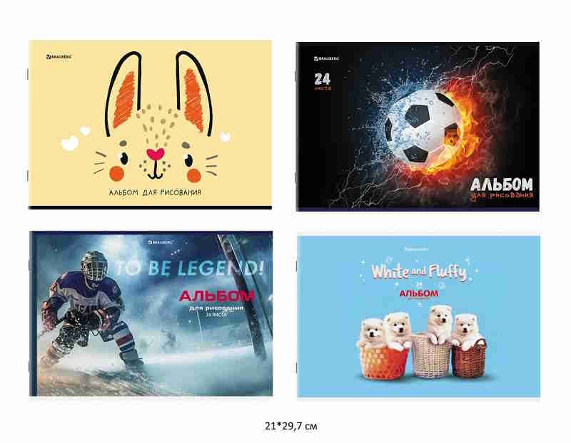кс_Альбом для рисования арт. 107106 А4, 24л. скоба, обложка картон BRAUBERG 203х288 мм "МИКС-1"Поставляется в одном или нескольких вариантах дизайна (без возможности выбора).