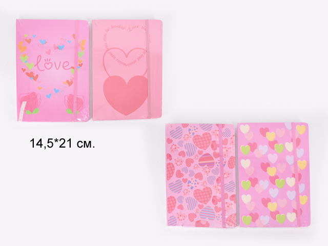 кц_Блокнот арт. WB-95429-G2 В твердой обложке "Сердца" 80 л., линия 145*209мм (16 шт.) шоубокс