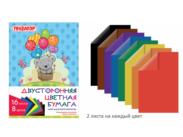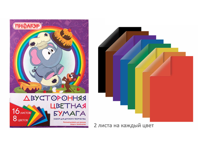 кв_Бумага цветная арт. Нб16-16дв_15833 Двусторон. мелованная А4, 16л. 16цв. "ARTspace" (1/25)Страна производителя Россия