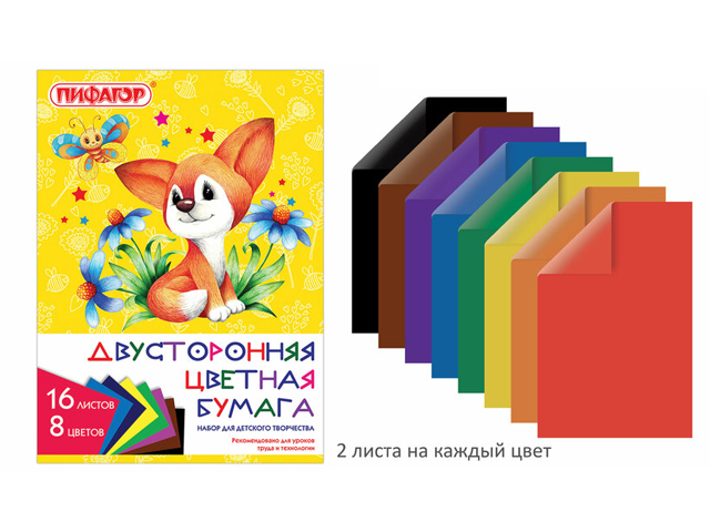 кс_Цветная бумага арт. 111331 А4 2-сторон. газетн. 16 л. 8 цв. на скобе ПИФАГОР 200х280мм "Лисенок"Набор газетной двусторонней цветной бумаги плотностью 50 г/м2 включает 16 листов формата А4 (200х280 мм) в 8-ми разнообразных и насыщенных однородных цветах. Листы скреплены скобами, легко режутся и сгибаются.