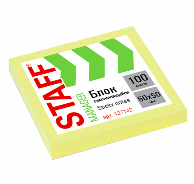 кс_Блок самоклеящийся (стикеры) арт. 127142 STAFF, 50х50 мм, 100 листов, желтыйСтикеры желтого пастельного цвета в форме квадрата 50 х 50 мм состоят из 100 листов.