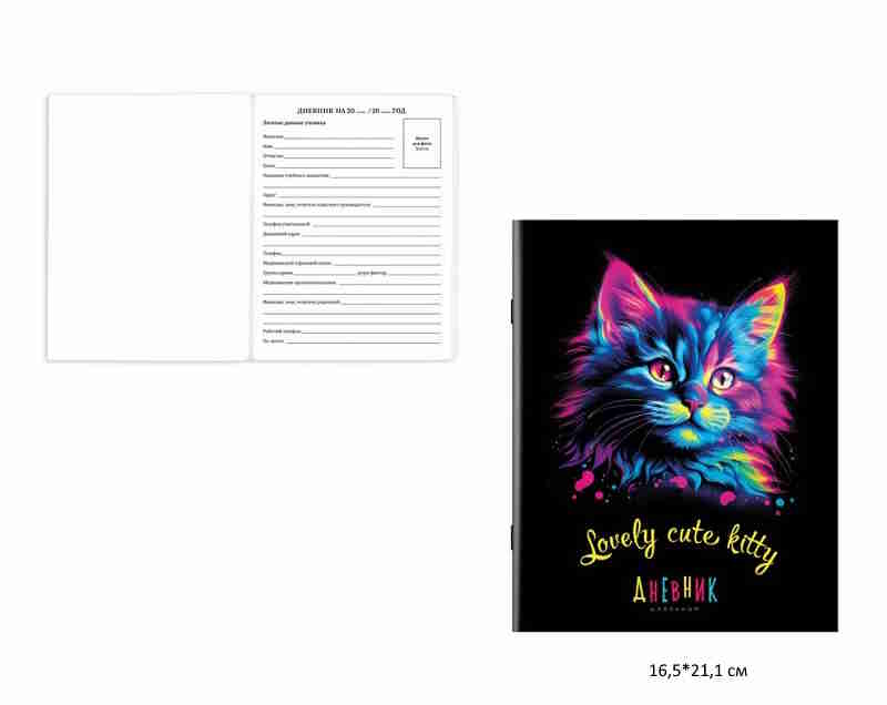кс_Дневник 1-11 класс арт. 107131 40 л. на скобе ПИФАГОР обложка картон, "Котик"Тип изделия: дневник с картонной обложкой