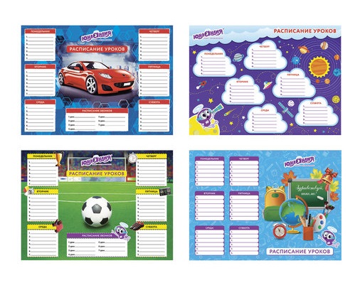 кс_Расписание уроков и звонков арт. 129782 А4, ЮНЛАНДИЯ, для мальчиков, ассорти (4 вида)Формат: А4