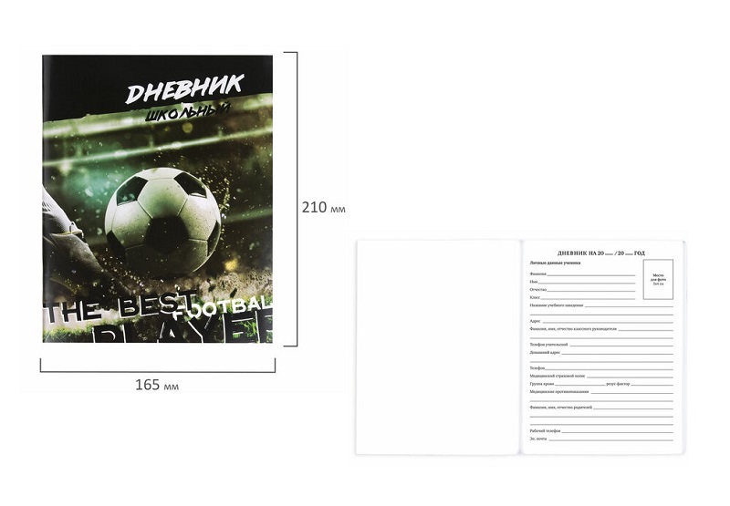 кс_Дневник 1-11 класс арт. 106817 40 л. на скобе ПИФАГОР обложка картон "Футбол"Тип обложки: картон