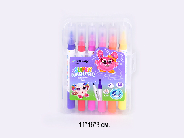 кц_Фломастеры акварельные арт. YL241801-12 Набор 12 цветов двусторонние в пласт.кор.