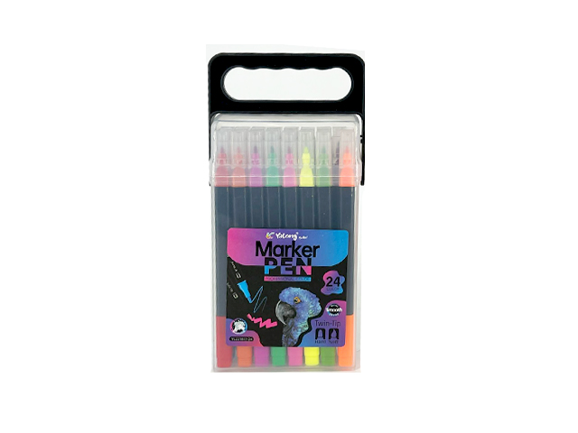 кц_Фломастеры акварельные арт. YL221813-24 Набор 24 цвета двусторонние в пласт.кор.