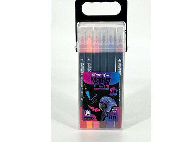 кц_Фломастеры акварельные арт. YL221813-18 Набор 18 цветов двусторонние в пласт.кор.
