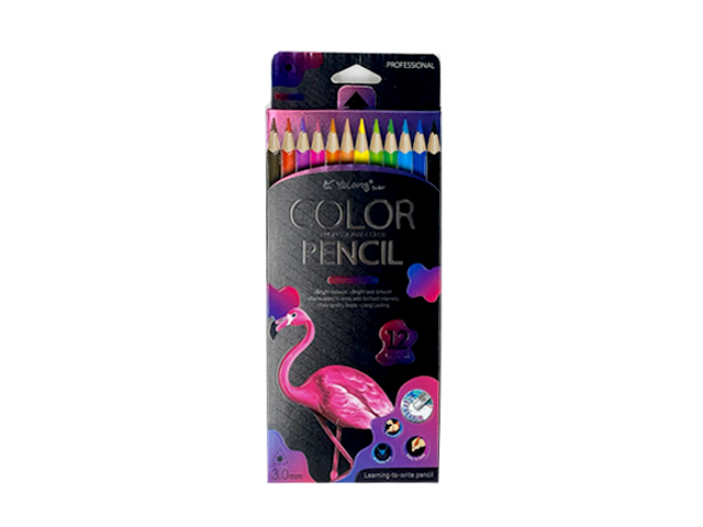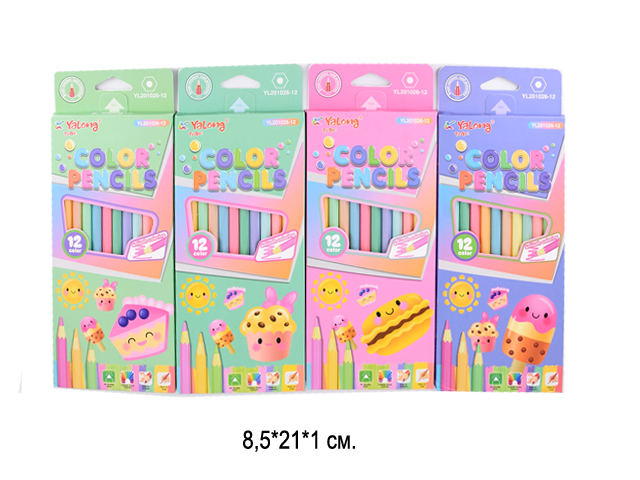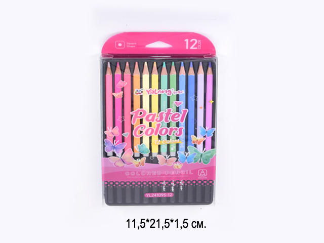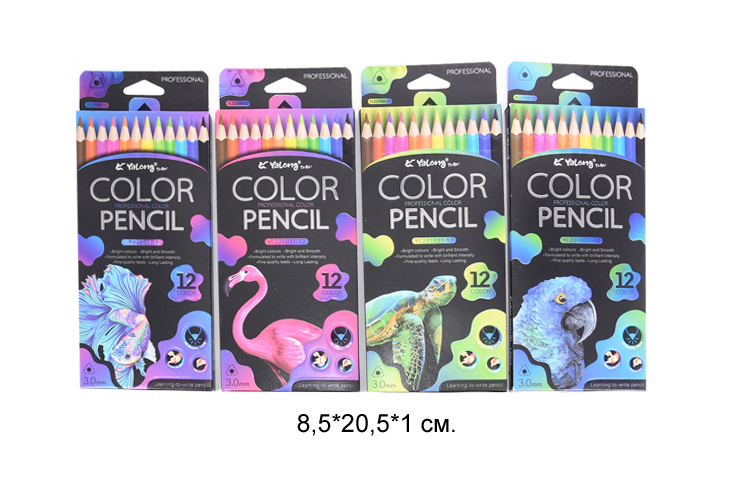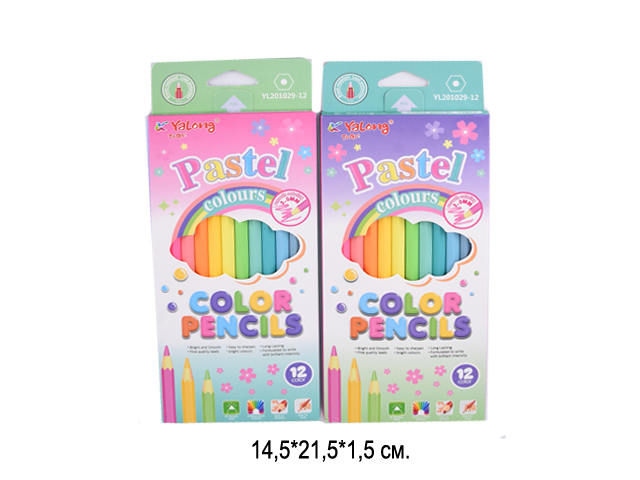 Набор состоит из 12 цветов: розовый, красный, желтый, оранжевый, салатовый, зеленый, голубой, синий, фиолетовый, коричневый, серый, черный. Шестигранная форма сечения корпуса позволяет карандашу не скатываться с поверхности стола. Карандаши изготовлены из пластика и имеют лакированный корпус, который при разломе не образует острые края и безопасен для детей. Легко затачиваются. Грифель диаметром 2,65 мм обладает повышенной прочностью. Все карандаши заточены и поставляются в картонной упаковке с европодвесом.