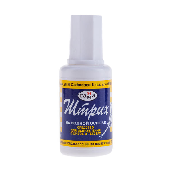 кв_кс_Корректирующая жидкость с кисточкой 27гр. "Гамма" арт.341002, на водной основе (1/10)Страна производитель: Россия