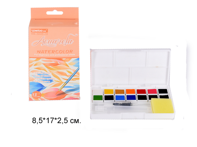 кц_Краски акварельные арт. WB-5049-12 Набор 12 цветов в оранжевой кор.
