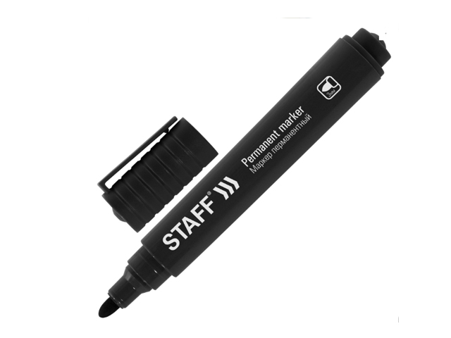 кс_Маркер перманентный арт. 152174 STAFF "Basic Budget PM-125" ЧЕРНЫЙ круглый наконечник 3 ммПерманентный маркер STAFF "Basic Budget PM-125" отлично подходит для повседневного использования. Предназначен для письма на любой поверхности: бумага, полиэтилен, дерево, стекло, металл, натуральная кожа, ткань, камень, плитка.