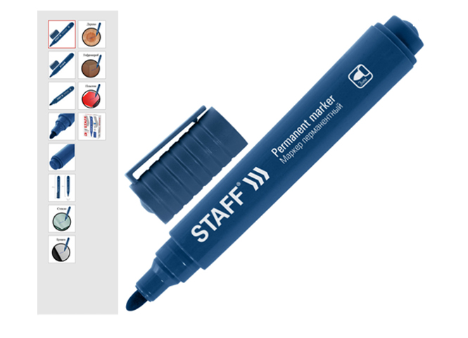 кс_Маркер перманентный арт. 152175 STAFF "Basic Budget PM-125" СИНИЙ круглый наконечник 3 ммЦвет чернил: синий
