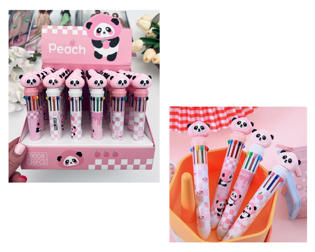Ручка шарковая арт. 9008-709 Многоцветная (10 цветов) Розовая панда 1 шт. (36 шт.) шоубокс