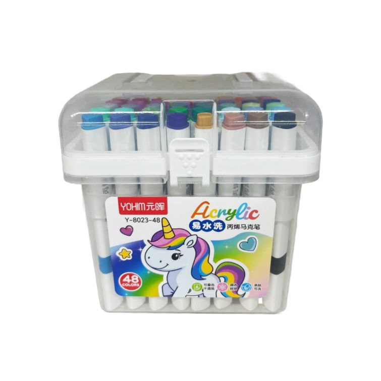 Маркеры арт. Y-8023-48 Акриловые 48 шт. "Единорог" в прозрачном кейсе|
