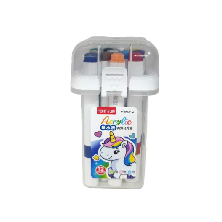 Маркеры арт. Y-8023-12 Акриловые 12 шт. "Единорог" в прозрачном кейсе|