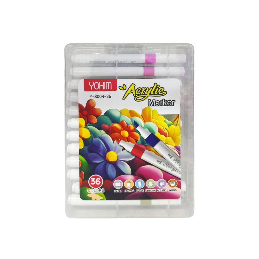 Маркеры арт. Y-8004-36 Акриловые 36 шт. "Цветы" в прозрачном кейсе|