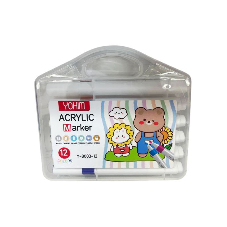 Маркеры арт. Y-8003-12 Акриловые 12 шт. "Зверушки" в прозрачном кейсе|