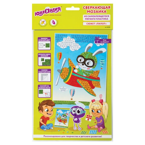 - Набор для творчества "Сверкающая мозаика из мягкого пластика", "Пилот", 21х29 см, ЮНЛАНДИЯ, 662361ID: СА_662361×Набор для творчества "Сверкающая мозаика из мягкого пластика", "Пилот", 21х29 см, ЮНЛАНДИЯ, 662361Сверкающая мозаика из мягкого пластика EVA ЮНЛАНДИЯ "Пилот" - это весёлый и занимательный способ развития мелкой моторики, аккуратности и цветового восприятия ребёнка. Все элементы в составе самоклеящиеся, для работы не требуются ножницы и клей.151.58 руб.