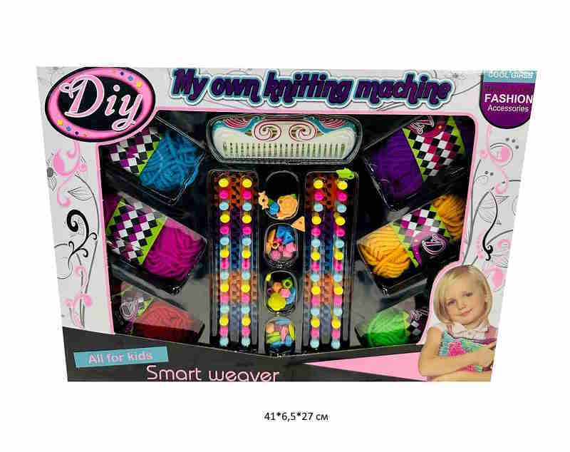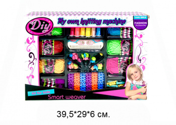 Комплектация: ткацкий станок, 6 мотков ниток, 7 мотков пряжи, набор разных бусинок.