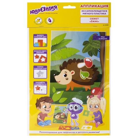 - Набор для творчества "Аппликация из мягкого пластика EVA", "Ёжик", 21х29 см, ЮНЛАНДИЯ, 662358ID: СА_662358×Набор для творчества "Аппликация из мягкого пластика EVA", "Ёжик", 21х29 см, ЮНЛАНДИЯ, 662358Аппликация из мягкого пластика EVA ЮНЛАНДИЯ "Ёжик" - это весёлый и занимательный способ развития мелкой моторики, аккуратности, цветового восприятия и фантазии ребёнка. Все элементы в составе самоклеящиеся, для работы не требуются ножницы и клей.257.91 руб.
