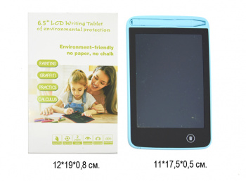 Размер упаковки: 17,5 х 27,5 х 0,8 см437.59 руб. - Планшет для рисования арт. 6,5-805 На батар. в кор.ID: K6,5×Планшет для рисования арт. 6,5-805 На батар. в кор.Электронный планшет для записей и рисования в цифровом формате. Возможности творческого применения планшета безграничны: идеально подходит для школы, офиса, дома, дачи и в дороге. Вы можете создавать рисунки, чертить, писать или делать подсчеты, оставлять сообщения или тренироваться делать граффити. А главное, эта легкая доска не наносит вред зрению, безопасен в применении, развивает мелкую моторику, творчество и мышление.