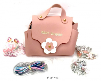 Набор упакован в стильной сумочке, которую можно использовать для хранения бусин или украшений, или дополнить ею свой образ