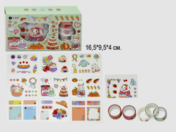 Размер упаковки; 33.7 х 25.7 х 7.9 см2 463.92 руб. - Набор для творчества арт. M06-3 "Зайка зел." Скотч, наклейки для скетчбука и дизайна в кор._×Набор для творчества арт. M06-3 "Зайка зел." Скотч, наклейки для скетчбука и дизайна в кор._Набор состоит из красивого декоративного скотча и прикольными наклейками, нужен для разных целей: для скрапбукинга, для скетчбука, для оформления обложек, для создания своих закладок, можно делать наклейки и так далее. В наборе 5 лент и 10 наклеек, но ведь это не обычный канцелярский скотч. А декоративный скотч с рисунками для оформления. Рисунки самые разные - есть картинки с мультяшками, есть просто орнамент. Возраст: от 5 лет Материал: скотч. бумага Производство: Китай Размер упаковки: 16,5 х 9,5 х 4 см."331.14 руб.