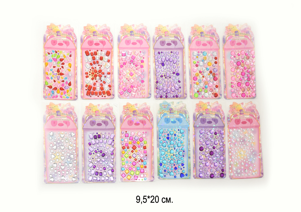 В дисплее содержится 24 тубы геля с блёстками объёмом 20 мл, представлены в 6 различных цветах: голубой, фиолетовый, розовый, оранжевый, жёлтый, зелёный.