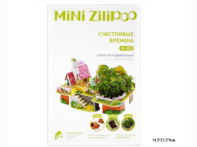 Пазл арт. M-003 "Домик" 3D построй, посади, вырасти в кор.=