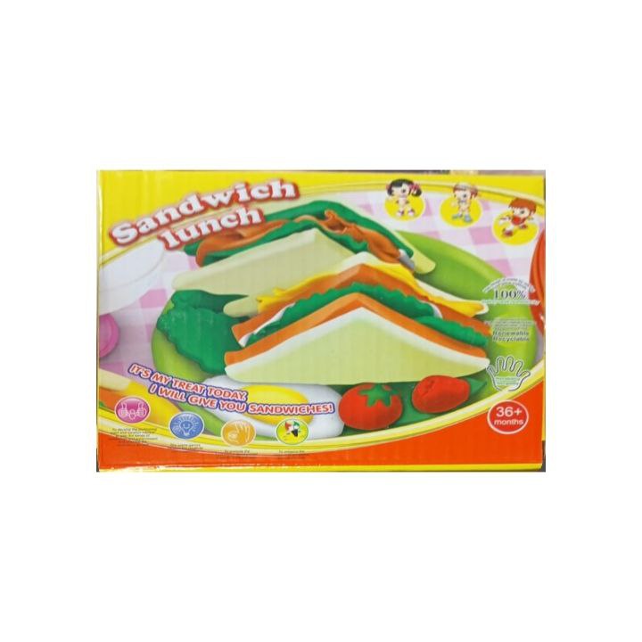 Комплектация: плита, посуда и кухонная утварь, 5 цветов пластилина, двухсторонняя досточка с трафаретами продуктов, чебуречная, мини каток для раскатки теста, формочки для продуктов, пипетка, кондитерский шприц с 4 видами узоров, палочки для суши
