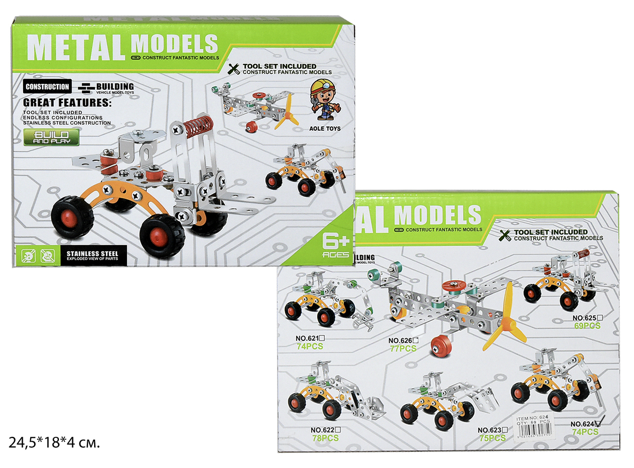 Конструктор метал. арт. 624 Техника 74 дет. в кор.~
