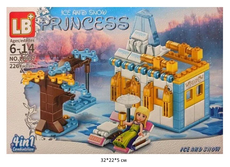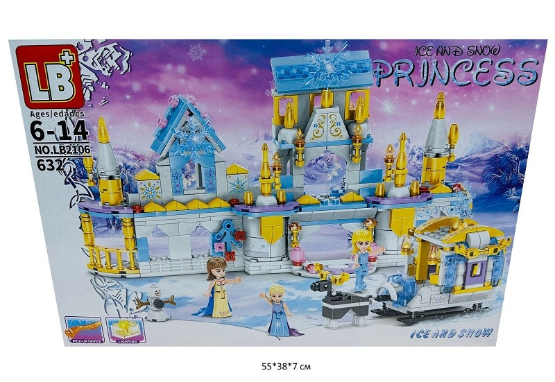 Конструктор арт. LB32106 Для девочек Зимний замок 632 дет. в кор.•Набор позволит окунуться в мир приключений вместе с персонажами популярного мультфильма. Высоко детализирванный двухэтажный замок впечатляет своим декором и королевским убранством. Минифигурки главных героев помогут придумать увлекательные разнообразные сюжеты с их участием.