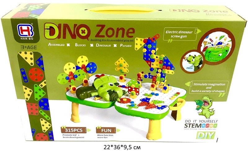 Конструктор арт. 9940A "Дино" 315 дет. с отверткой в чемодане-столике в кор._/24шт./