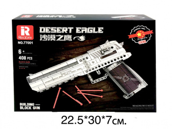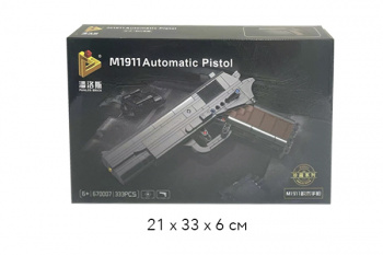 Конструктор арт. 14004 Пистолет 563 дет. в кор._Набор, которй позволит собрать игрушечный прототип оружия. Он абсолютно безопасный для детей, так как вместо реальных патронов используются игрушечные. Пистолет окрашен в чёрный цвет, по размеру он почти такой же, как оригинал. Ребёнок сможет использовать игрушку для того, чтобы потренироваться в меткости или организовать «войнушку» с друзьями. В комплекте есть игрушечный патроны красного цвета, их после выстрела будет несложно найти. Магазин заряжается точно так же, как в настоящем пистолете. Чтобы сделать выстрел, нужно нажать на спусковой крючок. В среднем игрушечная пуля летит несколько метров.