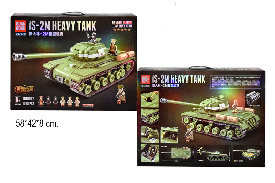 Конструктор арт. 100062 Тяжёлый танк ИС-2М 1068 дет. в кор.~•/16 шт./