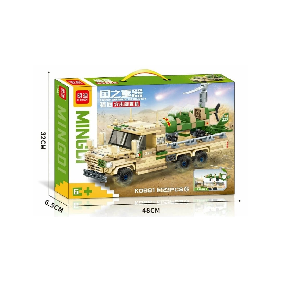 Конструктор арт. K0681-805 Вертолет-гидроплан на грузовике-транспортере 364 дет. в кор.