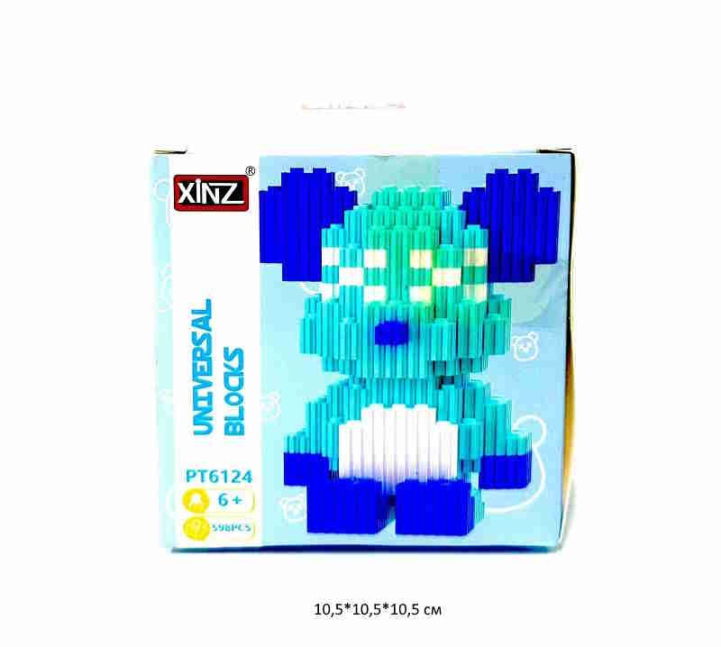 Конструктор арт. PT6124 Микро Медведь голубой 598 дет. в кор._