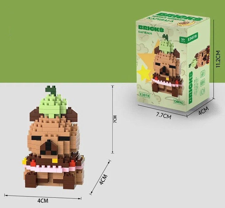 Конструктор арт. E3078-805 Микро Капибара в шапке-яблоко 202 дет. в кор.
