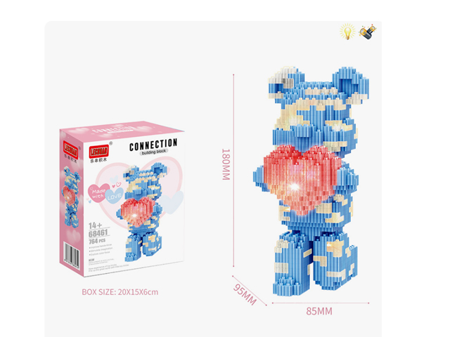 Конструктор арт. 68461 Микро Медведь голубой с сердцем свет. 764 дет. в кор.=