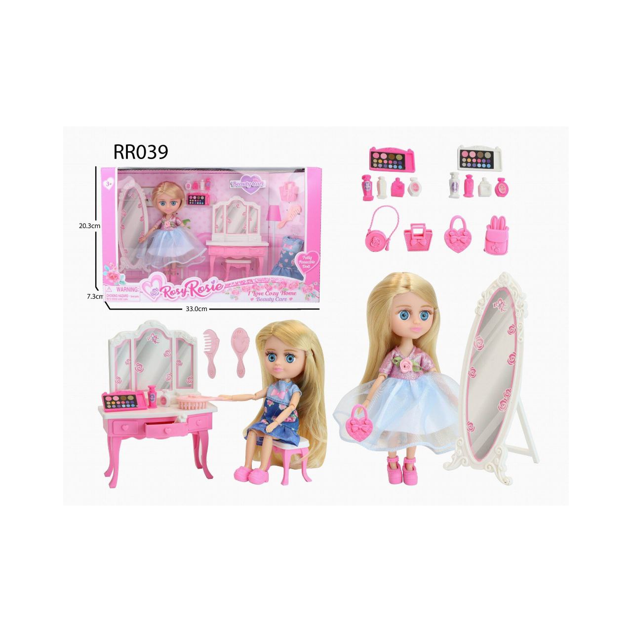 Туалетный столик, коляска, расческа и дополнительные аксессуары.