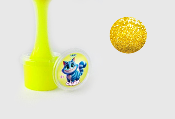 Слайм "Стекло" желтый неон с блестками, 90 гр