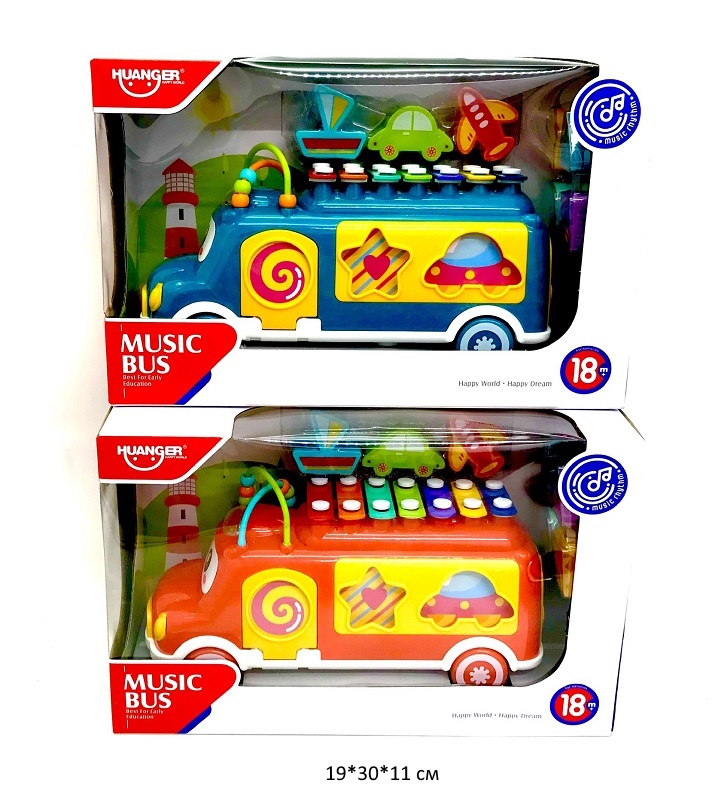Металлофон арт. HE8023 Автобус цвета микс на батар. в кор._