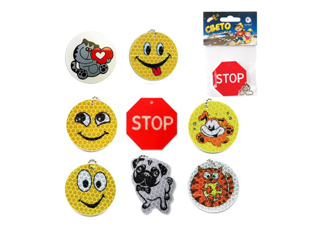 мм, пластик, с рисунком, АССОРТИЭффективная защита: отражает свет фар, увеличивая видимость до 100–150 метров при ближнем свете и до 400 метров — при дальнем. Элегантный дизайн подходит для всех возрастов, а компактный размер и небольшой вес делают его удобным для повседневного использования. Легко крепится на сумки, ключи или одежду.
