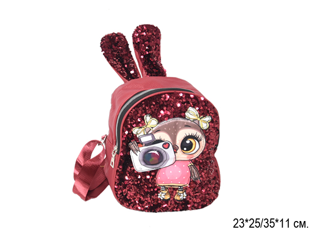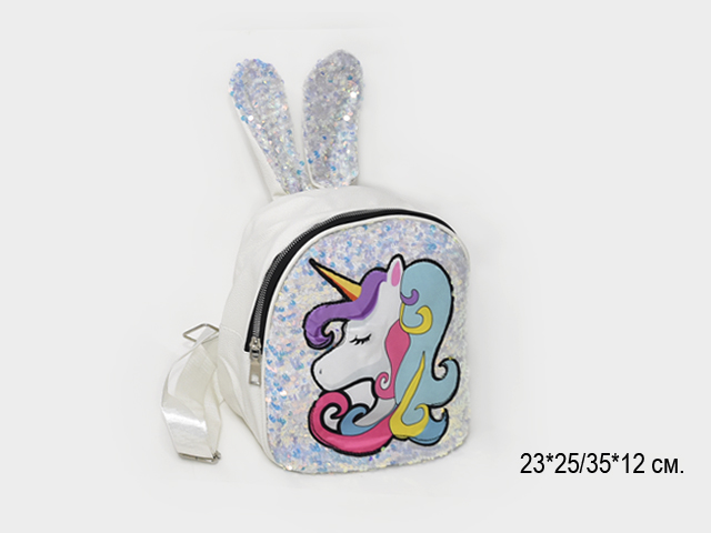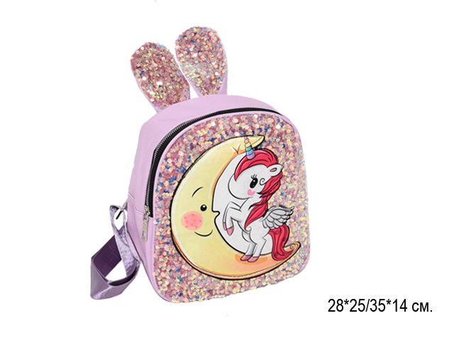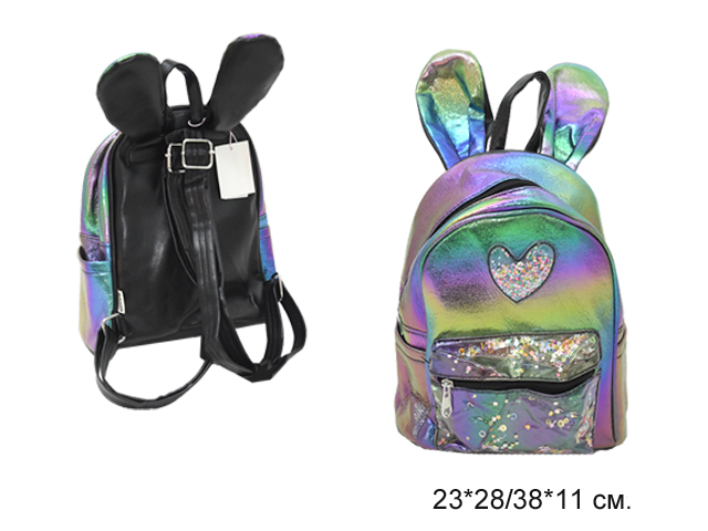 Рюкзак арт. 618-519 Ушки блестки, цвета микс в пак._/240 шт./- Одно отделение