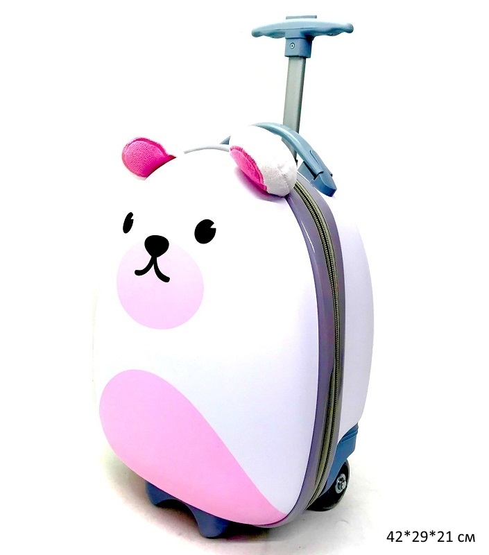 Чемодан арт. HY002 Медведь белый с выдвижной ручкой_/20 шт./Материал: пластик, текстиль, металл