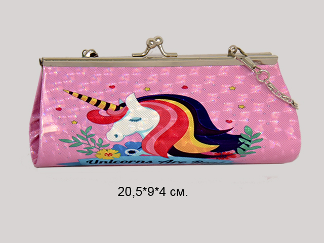 Кошелек арт. 701 MD-11 Единорог на цепочке 1шт. в пак._Состоит из плотного каркаса, обтянутого поливинилом. У сумочки есть удобная ручка-цепочка.