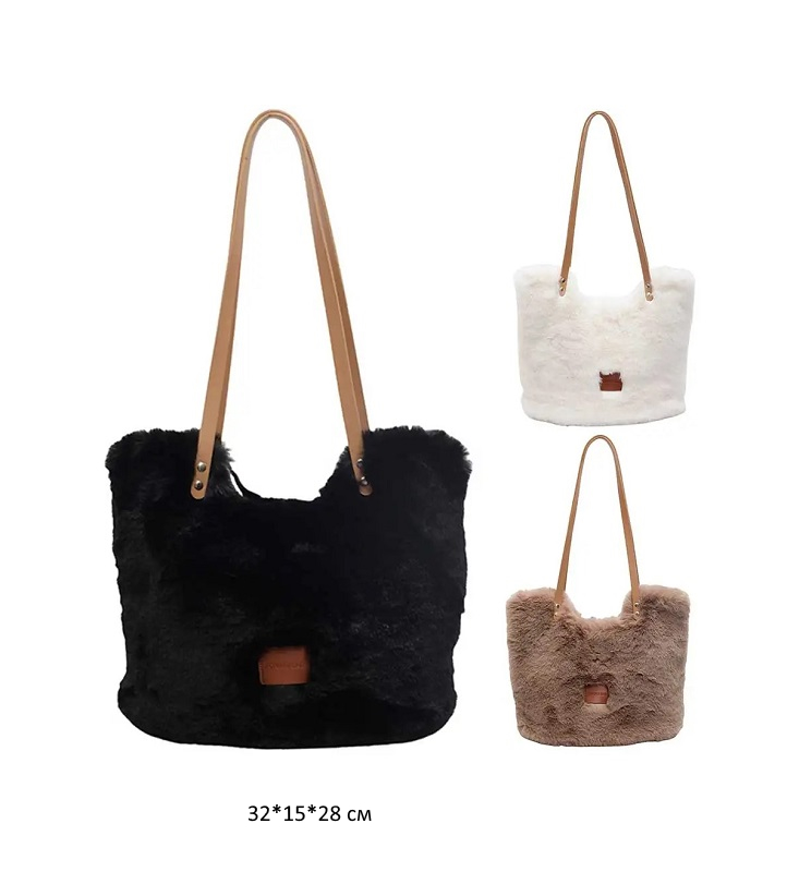 им Сумка арт. 209080 Мохнатая с 2 ручками из экокожи цвета микс 30*40 см 1 шт. в пак.