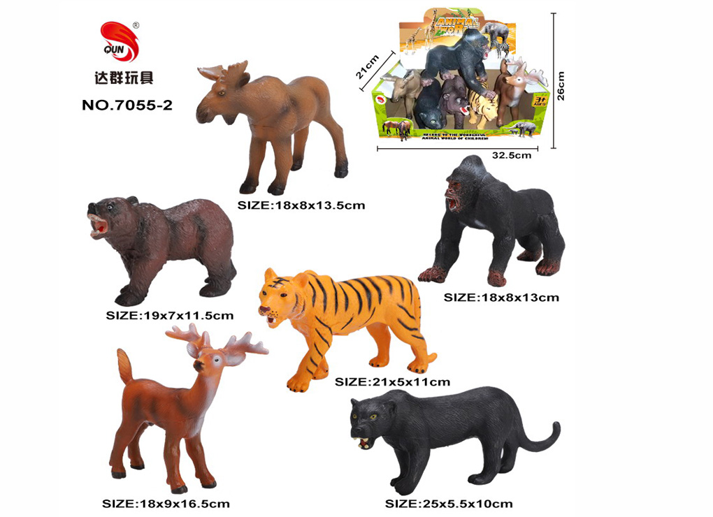 Животные арт. 7055-2" Дикие фигурка (6 шт.) шоубокс 32,5*26*21Приятные на ощупь, имеют реалистичные формы и окрас. Игрушка развивает тактильные ощущения, мелкую моторику и воображение. Все фигурки прекрасно детализированы, и невероятно похожи на настоящих зверей.