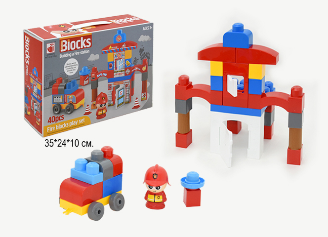 Конструктор арт. 313T-76A "Пожарная часть" блоки 40 дет. в кор. 35*10*24 /24шт./.