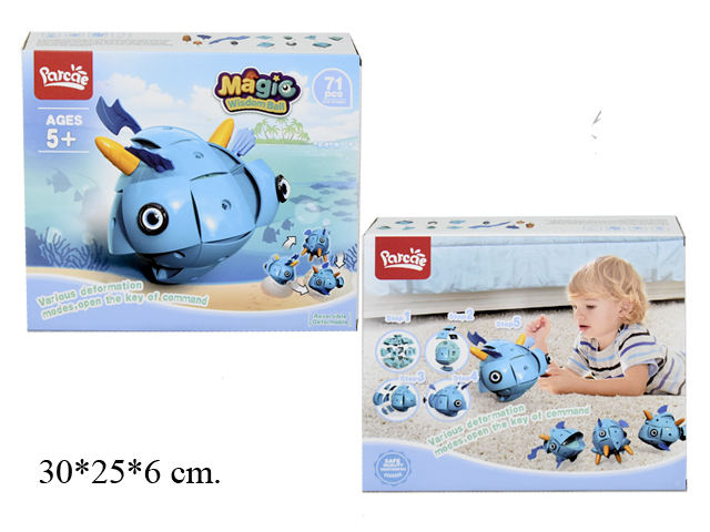 Конструктор магнитный арт. 003 Рыбка в кор.°Из деталей одного конструктора можно собрать 4 разные фигурки! Размер в собранном виде примерно 15-20 см. В комплекте: 71 деталь и инструкция.